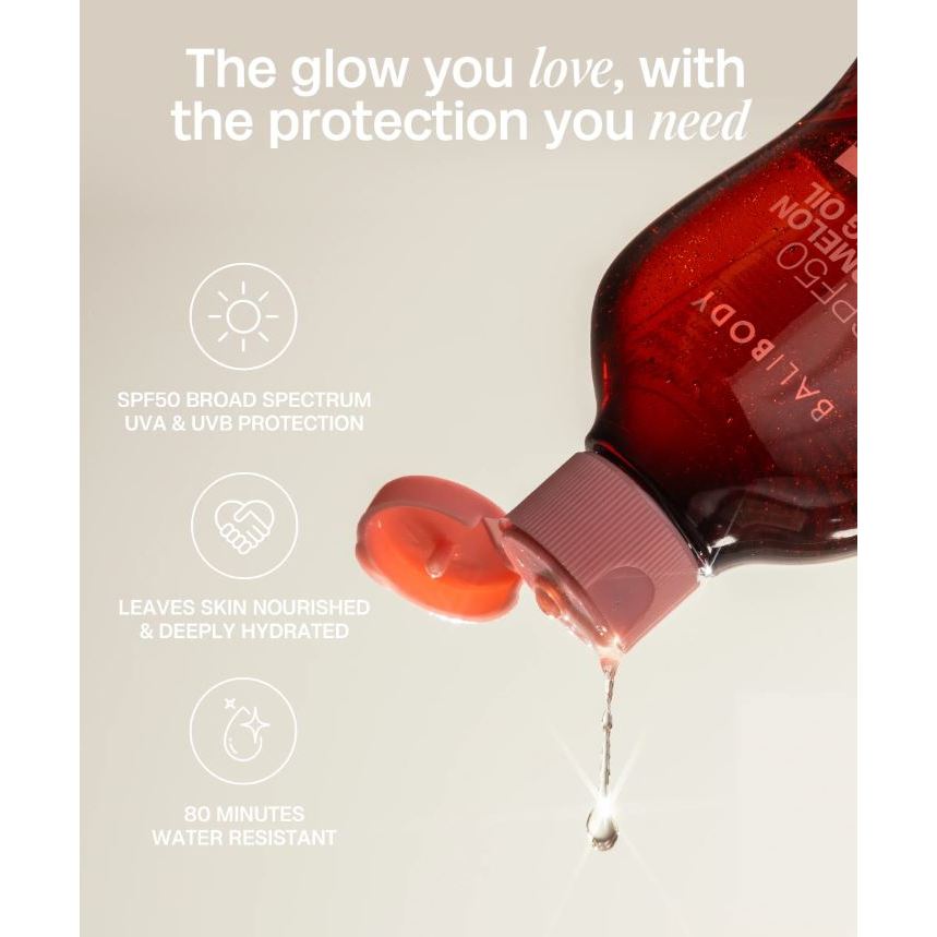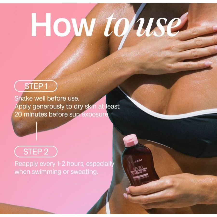 Bali Body's Watermelon Tanning Oil just got an upgrade. Now with SPF50 protection, this ultra nourishing watermelon scented Sunscreen Oil allows you to achieve a sun-kissed glow while staying protected.