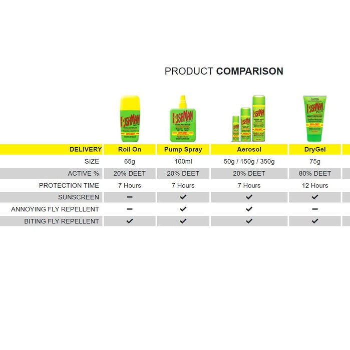 - All Bushman Plus 20% DEET has sunscreen protection except the roll-on range