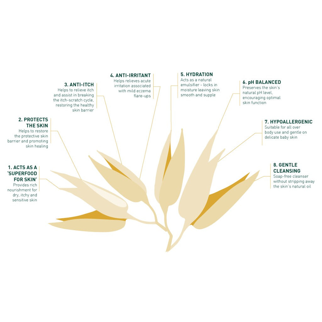 With 100% natural Colloidal Oatmeal to gently cleanse & help soothe dry skin & irritation
