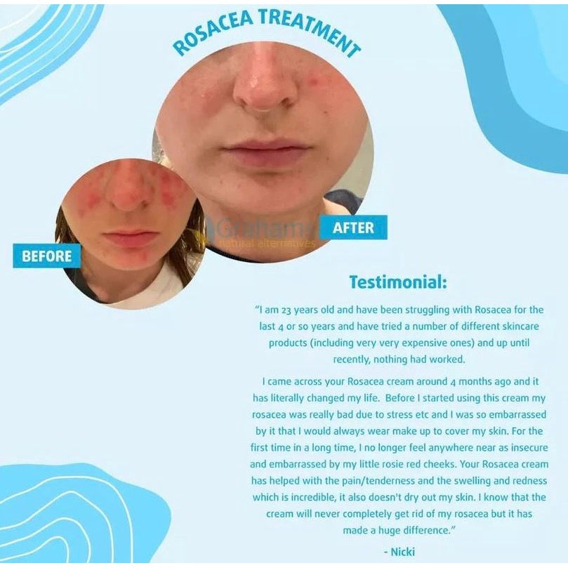 Grahams Natural Rosacea Cream is gentle natural formulation that helps to sooth, calm and protect the symptoms of rosacea. This product is Class l Medical Device and is scientifically proven to assist in the management of rosacea. With powerful natural ingredients such as; colloidal oatmeal, sunflower seed oil & vitamin C it provides a protective coat over the skin and improve the skins barrier function.