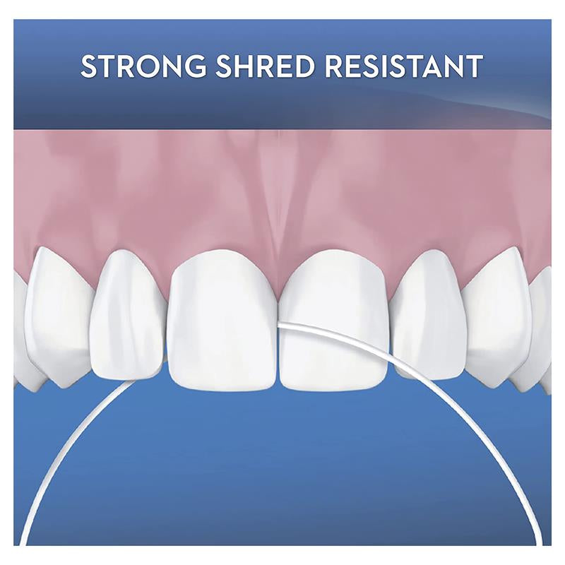 Brushing alone can't get to all the hard-to-reach places where plaque builds up. But Oral-B EssentialFloss dental floss can. With its light wax coating and its shred-resistant texture, it slides easily between your teeth. It helps clean the tough-to-get plaque away. Used morning or evening when you brush, Oral-B EssentialFloss helps your gums and your teeth stay healthy.
