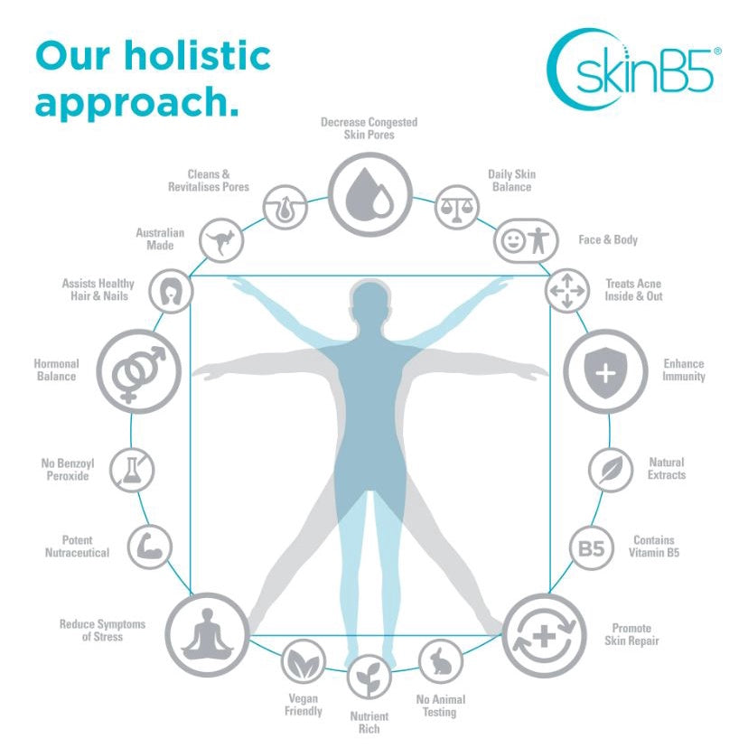 Scientifically formulated to actively clear acne, pimples, blackheads and whiteheads. Skinb5's patented advanced formula features Vitamin B5, vitamin A, zinc, folic acid & biotin.
