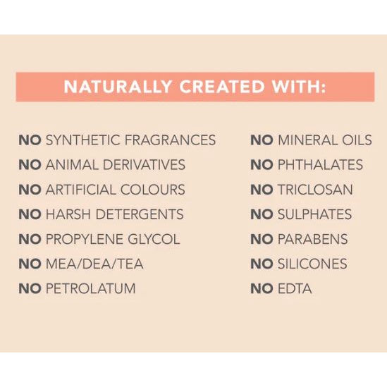 Water (Aqua), Aloe Barbadensis Leaf Juice, Cocamidopropyl Betaine, Sodium Lauroyl Methyl Isethionate, Althaea Officinalis Root Extract (Marshmallow Root), Eucalyptus Olida Leaf Extract (Strawberry Gum), Acronychia Acidula Fruit Extract (Lemon Aspen), Mentha Piperita (Peppermint) Leaf Extract, Epilobium Angustifolium Flower/Leaf/Stem Extract (Willowherb), Cydonia Oblonga Leaf Extract (Quince), Camellia Sinensis Leaf Extract (Green Tea/White Tea), Moringa Oleifera Leaf Extract, Salvia Officinalis (Sage) Leaf Extract, Zingiber Officinale (Ginger) Root Extract, Cocos Nucifera (Coconut) Fruit Extract, Punica Granatum Fruit Extract (Pomegranate), Tocopherol (Vitamin E), Glycerin, Glycine Soja Oil, Sodium Metabisulfite, Potassium Sorbate, Sodium Benzoate, Benzyl Alcohol, Phenoxyethanol, Tetrasodium Glutamate Diacetate, Leuconostoc/Radish Root Ferment Filtrate, Citric Acid.
