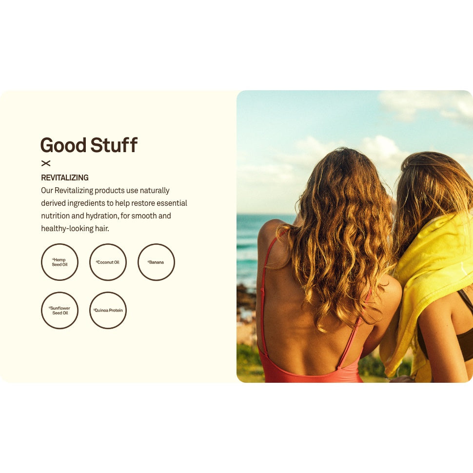 REVITALIZING 3-IN-1. By far the most “borrowed” item from our beach house, this Leave In helps detangle, condition and protect even the most damaged locks. Enhance and restore hair while controlling frizz and preventing split ends.